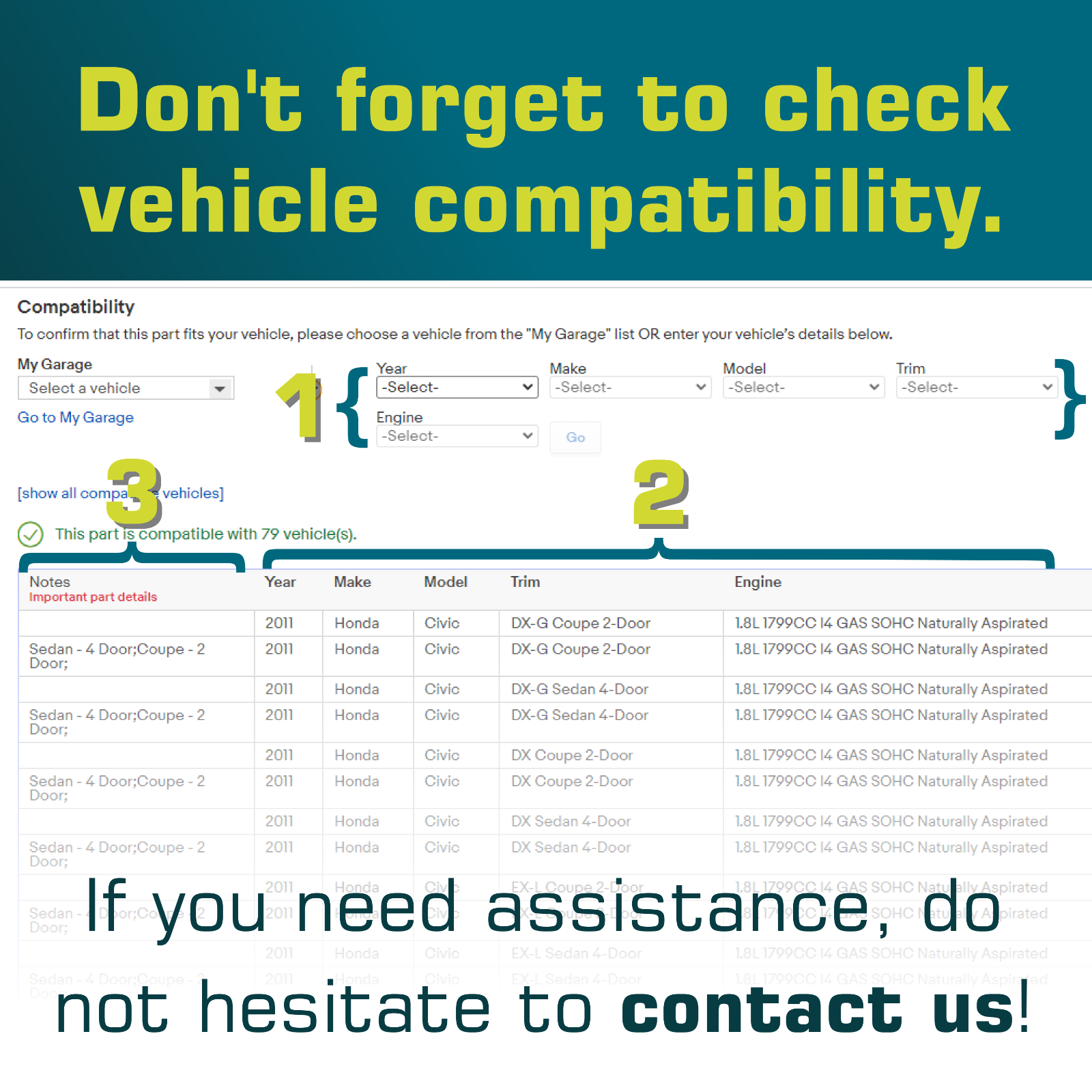 See List for Fitment